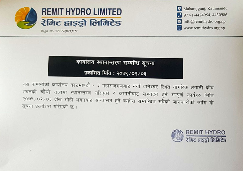 Notices प्रथम पटक प्रकाशित मिति: २०७९।०८।२७